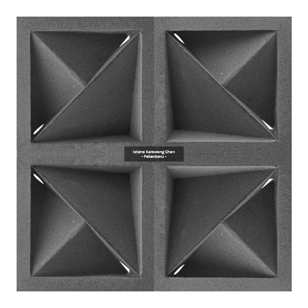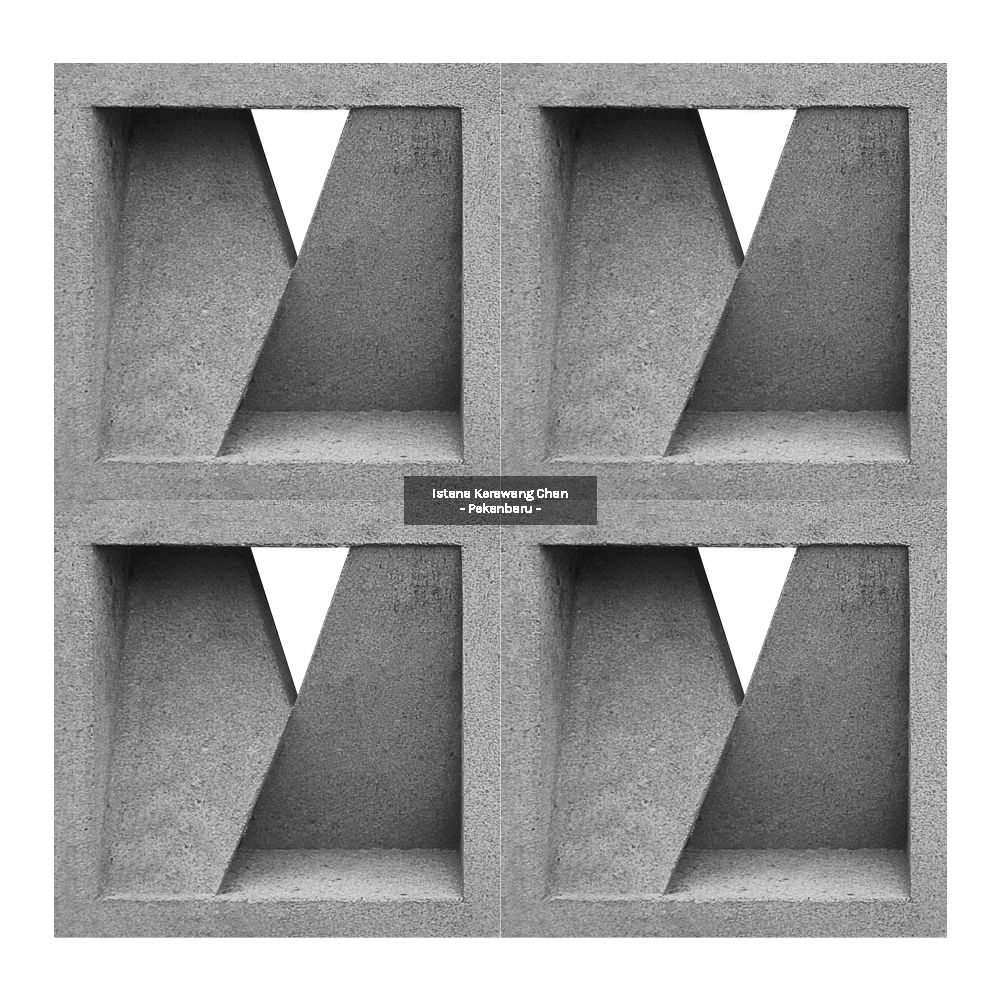 Roster Beton 2 Muka Model 09 PANJANG : 20cm l LEBAR : 20cm l TEBAL : 10cm Harga : Rp 12.000 Pesan Sekarang Info : – Pemesanan QTY Dibawah 100pcs harga: Rp 12.000 – Pemesanan QTY 100pcs s/d 300pcs, harga : Rp 11.500 – Pemesanan diatas 300pcs harga : Rp 11.000 – Pemesanan di luar kota Pekanbaru akan dikenakan biaya tambahan Metode Pembuatan: Cetak tumbuk manual Aplikasi: Dinding pemisah / penyekat ruang semi-terbuka, Ventilasi dinding / lubang udara, Fasad / elemen dekoratif eksterior, Dinding taman / sekat halaman, Atap semi-terbuka atau kanopi kerawang, pagar beton minimalis, dll. Detail : Rekomendasi Susunan : Galeri :