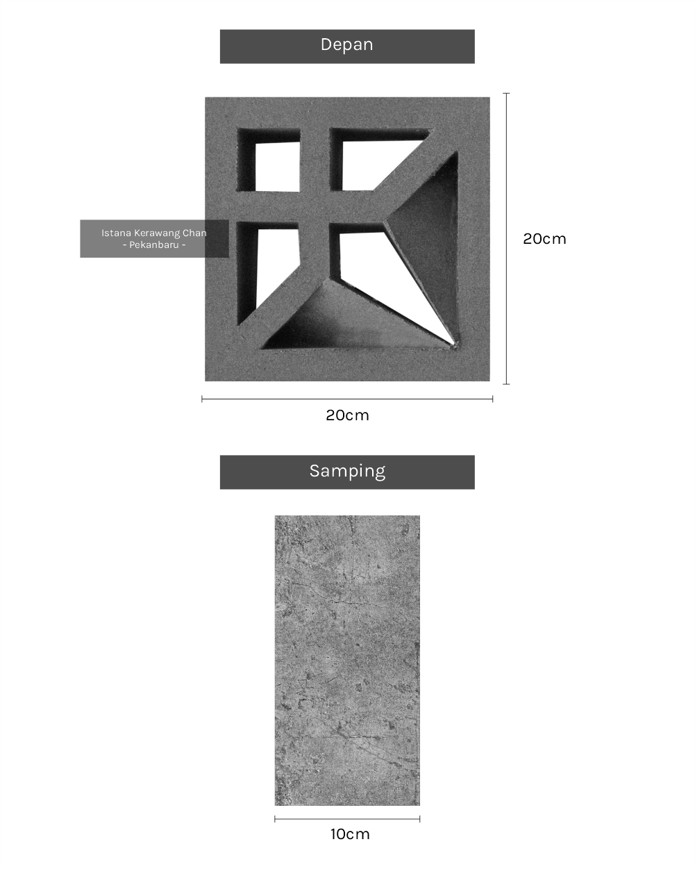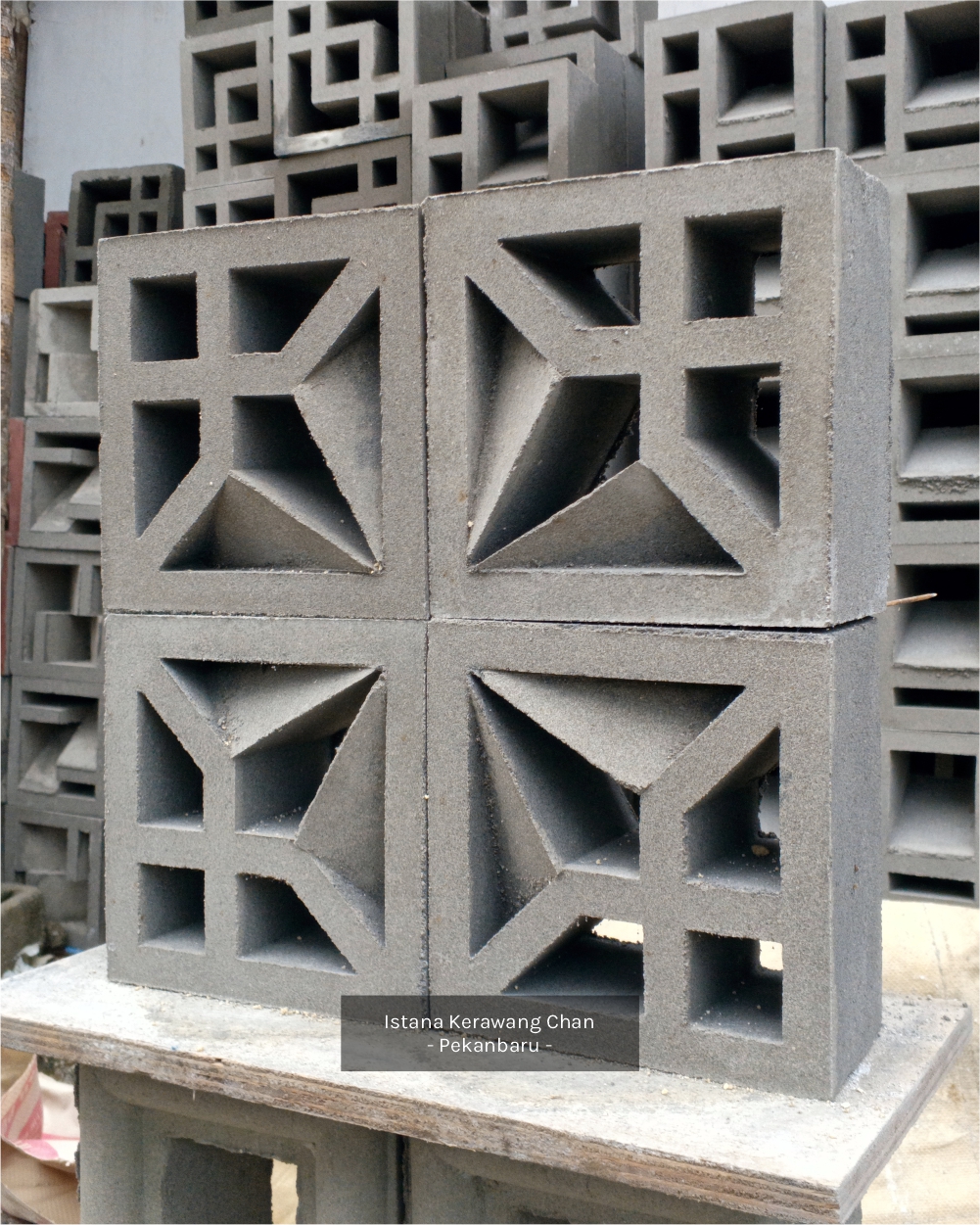 / Roster 1 Muka / Oleh Roster Beton 1 Muka Model 14 PANJANG : 20cm l LEBAR : 20cm l TEBAL : 10cm Harga : Rp 10.000 Pesan Sekarang Info : – Pemesanan QTY Dibawah 100pcs harga: Rp 10.000 – Pemesanan QTY 100pcs s/d 300pcs, harga : Rp 9.500 – Pemesanan diatas 300pcs harga : Rp 9.000 – Pemesanan di luar kota Pekanbaru akan dikenakan biaya tambahan Metode Pembuatan: Cetak tumbuk manualAplikasi: Dinding pemisah / penyekat ruang semi-terbuka, Ventilasi dinding / lubang udara, Fasad / elemen dekoratif eksterior, Dinding taman / sekat halaman, Atap semi-terbuka atau kanopi kerawang, pagar beton minimalis, dll. Detail : Rekomendasi Susunan : Galeri :
