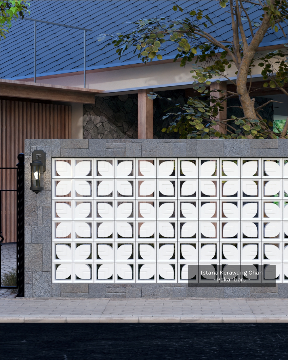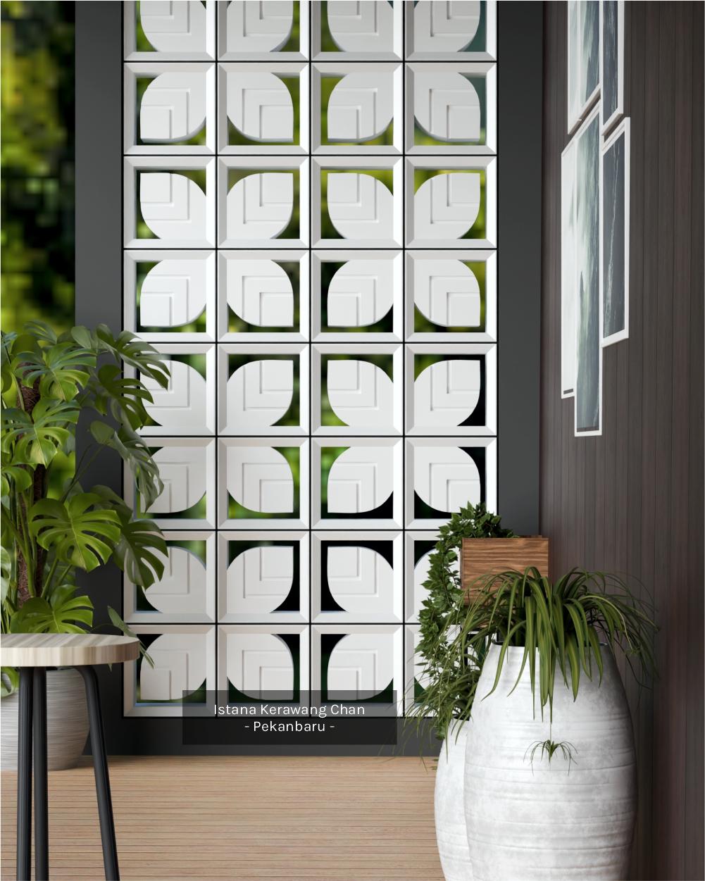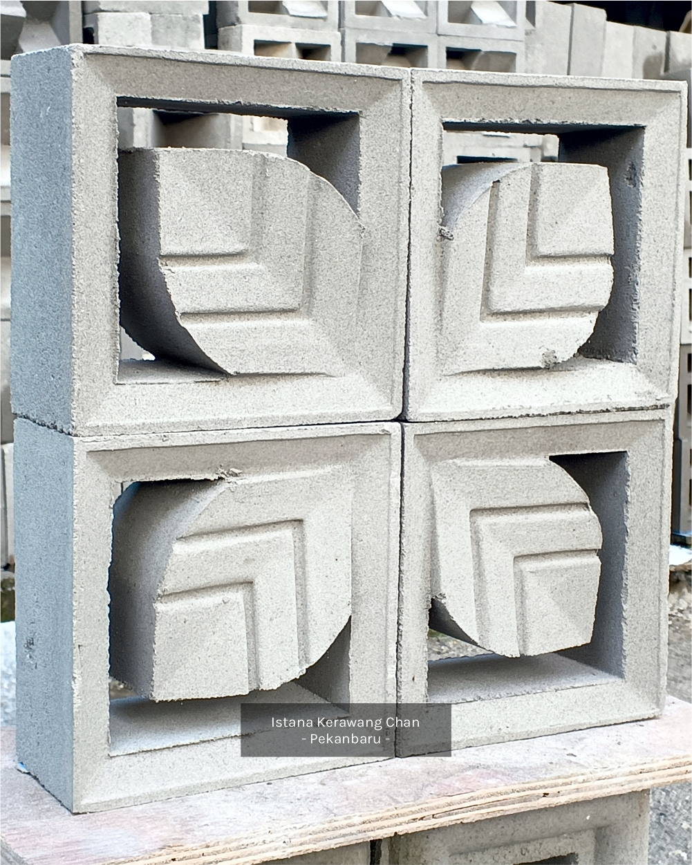 Aplikasi: Dinding pemisah / penyekat ruang semi-terbuka, Ventilasi dinding / lubang udara, Fasad / elemen dekoratif eksterior, Dinding taman / sekat halaman, Atap semi-terbuka atau kanopi kerawang, pagar beton minimalis, dll.