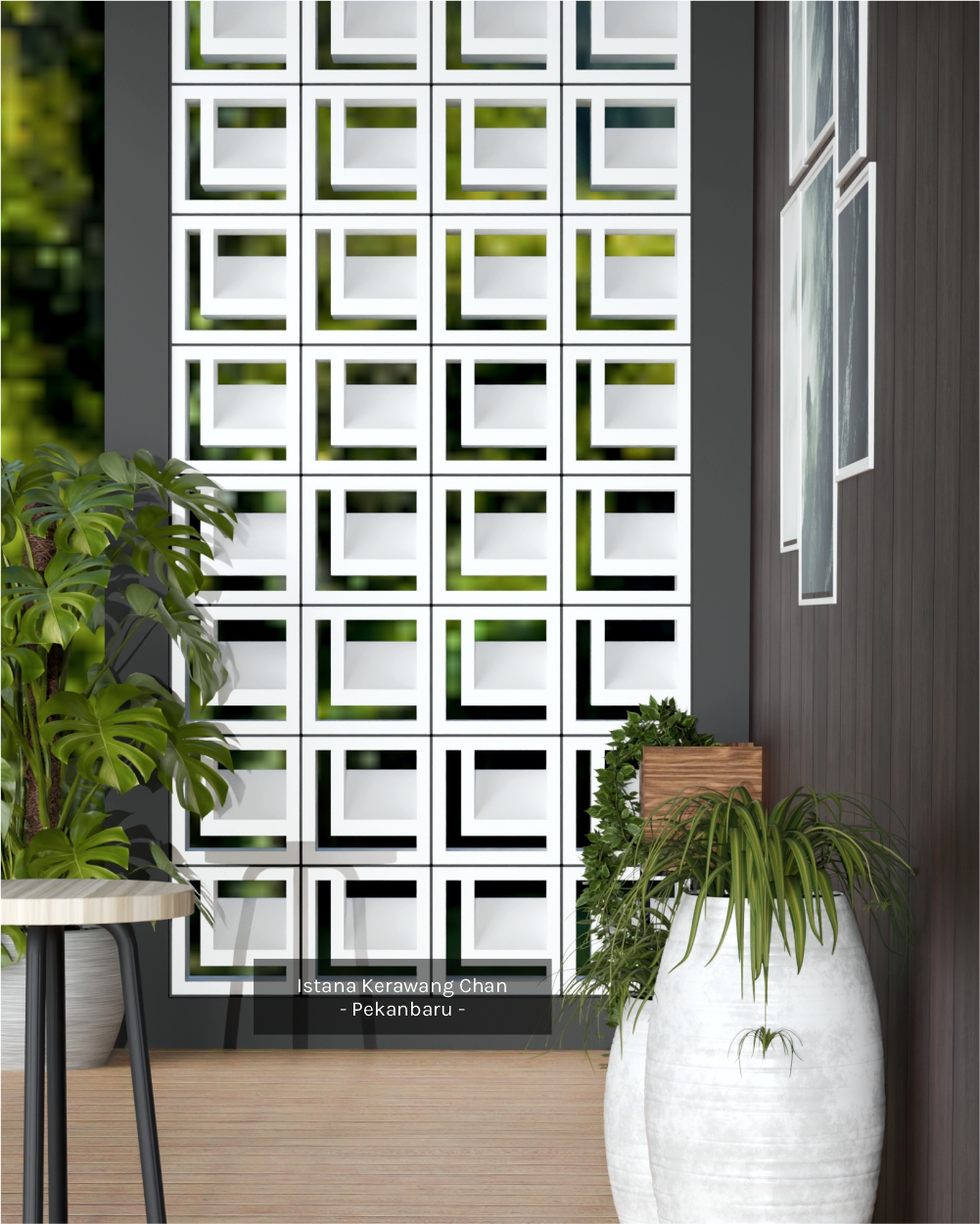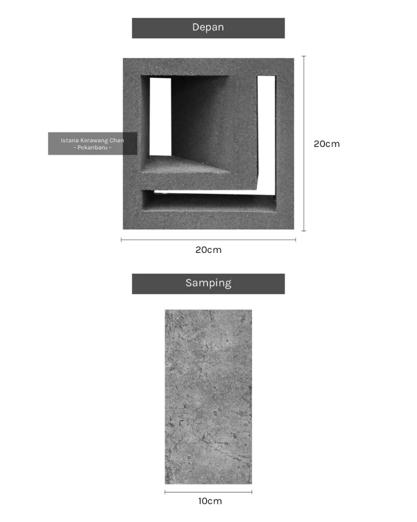 / Roster 1 Muka / Oleh Roster Beton 1 Muka Model 8 PANJANG : 20cm l LEBAR : 20cm l TEBAL : 10cm Harga : Rp 10.000 Pesan Sekarang Info : – Pemesanan QTY Dibawah 100pcs harga: Rp 10.000 – Pemesanan QTY 100pcs s/d 300pcs, harga : Rp 9.500 – Pemesanan diatas 300pcs harga : Rp 9.000 – Pemesanan di luar kota Pekanbaru akan dikenakan biaya tambahan Metode Pembuatan: Cetak tumbuk manualAplikasi: Dinding pemisah / penyekat ruang semi-terbuka, Ventilasi dinding / lubang udara, Fasad / elemen dekoratif eksterior, Dinding taman / sekat halaman, Atap semi-terbuka atau kanopi kerawang, pagar beton minimalis, dll. Detail : Rekomendasi Susunan : Galeri :
