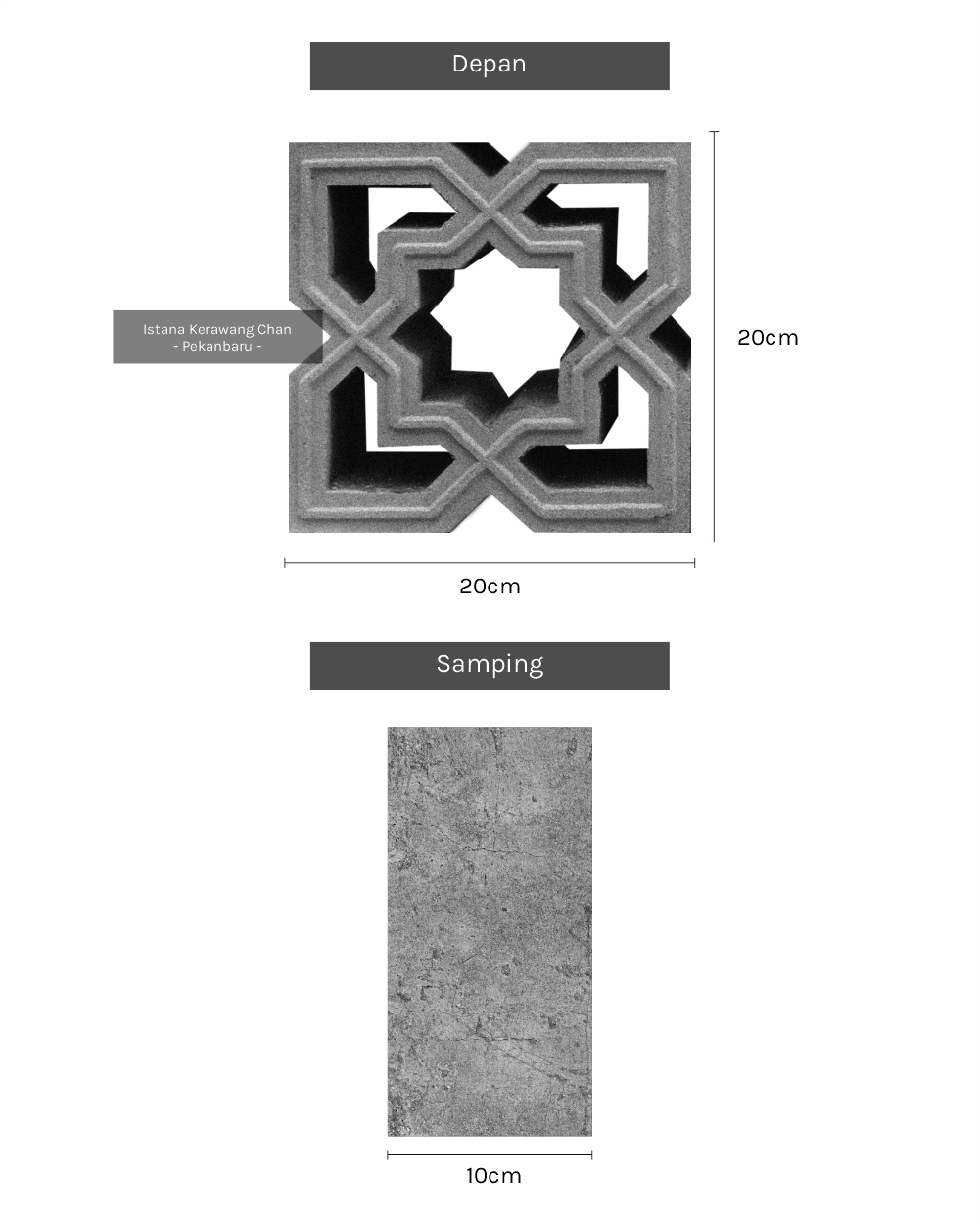 / Roster 1 Muka / Oleh Roster Beton 1 Muka Model 9 PANJANG : 20cm l LEBAR : 20cm l TEBAL : 10cm Harga : Rp 10.000 Pesan Sekarang Info : – Pemesanan QTY Dibawah 100pcs harga: Rp 10.000 – Pemesanan QTY 100pcs s/d 300pcs, harga : Rp 9.500 – Pemesanan diatas 300pcs harga : Rp 9.000 – Pemesanan di luar kota Pekanbaru akan dikenakan biaya tambahan Metode Pembuatan: Cetak tumbuk manualAplikasi: Dinding pemisah / penyekat ruang semi-terbuka, Ventilasi dinding / lubang udara, Fasad / elemen dekoratif eksterior, Dinding taman / sekat halaman, Atap semi-terbuka atau kanopi kerawang, pagar beton minimalis, dll. Detail : Rekomendasi Susunan : Galeri :