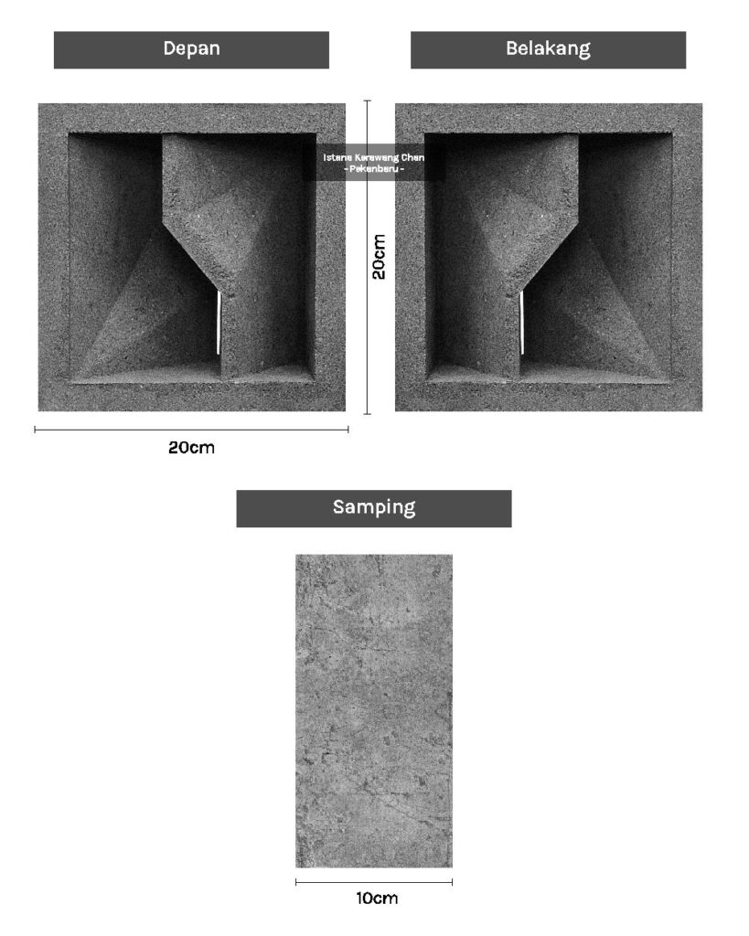 Aplikasi: Dinding pemisah / penyekat ruang semi-terbuka, Ventilasi dinding / lubang udara, Fasad / elemen dekoratif eksterior, Dinding taman / sekat halaman, Atap semi-terbuka atau kanopi kerawang, pagar beton minimalis, dll.