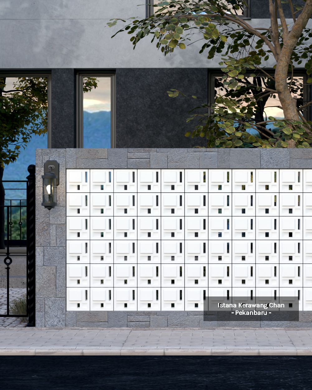 / Roster 2 Muka / Oleh Roster Beton 2 Muka Model 07 PANJANG : 20cm l LEBAR : 20cm l TEBAL : 10cm Harga : Rp 12.000 Pesan Sekarang Info : – Pemesanan QTY Dibawah 100pcs harga: Rp 12.000 – Pemesanan QTY 100pcs s/d 300pcs, harga : Rp 11.500 – Pemesanan diatas 300pcs harga : Rp 11.000 – Pemesanan di luar kota Pekanbaru akan dikenakan biaya tambahan Metode Pembuatan: Cetak tumbuk manualAplikasi: Dinding pemisah / penyekat ruang semi-terbuka, Ventilasi dinding / lubang udara, Fasad / elemen dekoratif eksterior, Dinding taman / sekat halaman, Atap semi-terbuka atau kanopi kerawang, pagar beton minimalis, dll. Detail : Rekomendasi Susunan : Galeri :