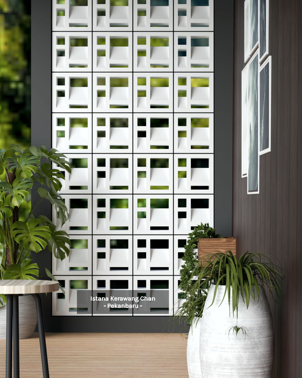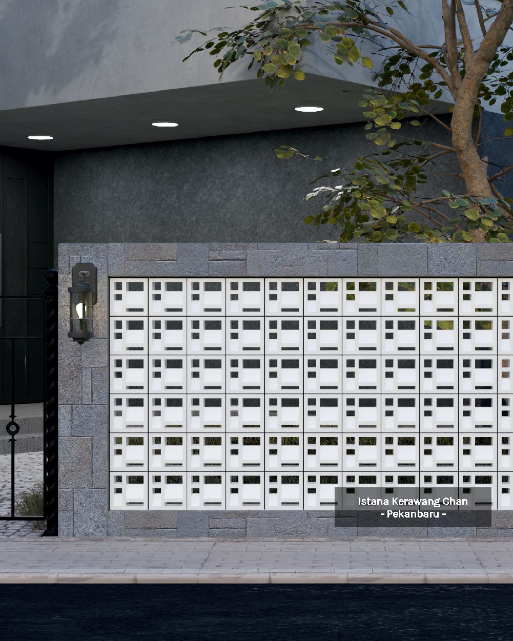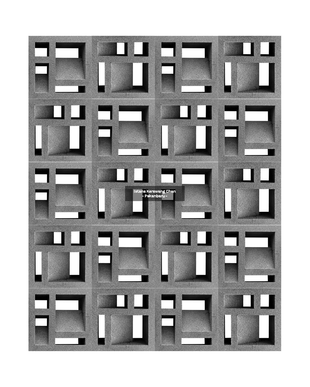 / Roster 2 Muka / Oleh Roster Beton 2 Muka Model 08 PANJANG : 20cm l LEBAR : 20cm l TEBAL : 10cm Harga : Rp 12.000 Pesan Sekarang Info : – Pemesanan QTY Dibawah 100pcs harga: Rp 12.000 – Pemesanan QTY 100pcs s/d 300pcs, harga : Rp 11.500 – Pemesanan diatas 300pcs harga : Rp 11.000 – Pemesanan di luar kota Pekanbaru akan dikenakan biaya tambahan Metode Pembuatan: Cetak tumbuk manualAplikasi: Dinding pemisah / penyekat ruang semi-terbuka, Ventilasi dinding / lubang udara, Fasad / elemen dekoratif eksterior, Dinding taman / sekat halaman, Atap semi-terbuka atau kanopi kerawang, pagar beton minimalis, dll. Detail : Rekomendasi Susunan : Galeri :